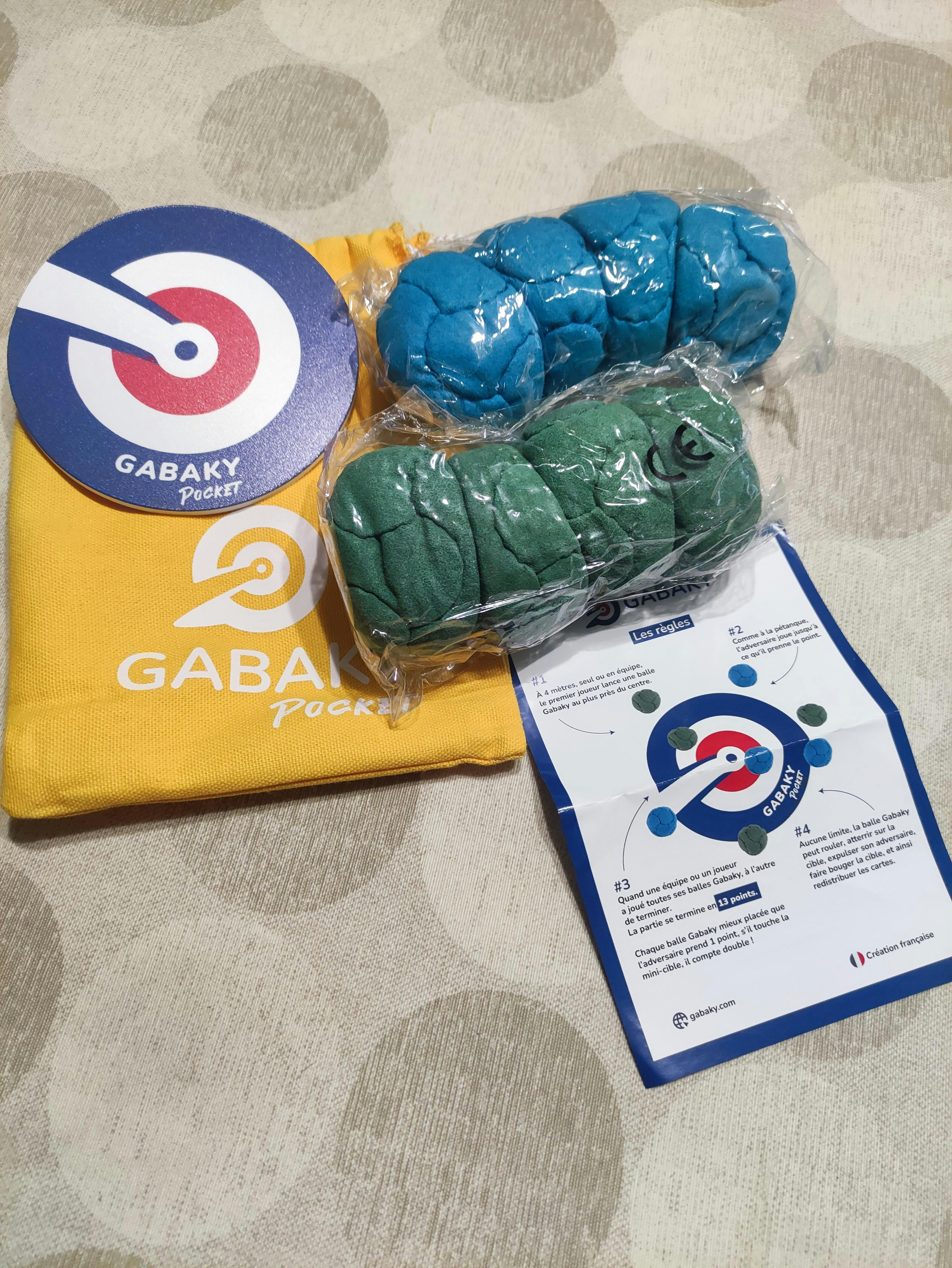 Le Gabaky mélange la pétanque, le palet et le curling. Le cochonnet ? C'est le centre de la cible. Le premier à 13 points remporte la partie. C'est un jeu festif et addictif, idéal pour jouer en famille et entre amis. En individuel ou par équipe, plusieurs techniques et stratégies en font un jeu d’adresse pour les journées et soirées détentes.